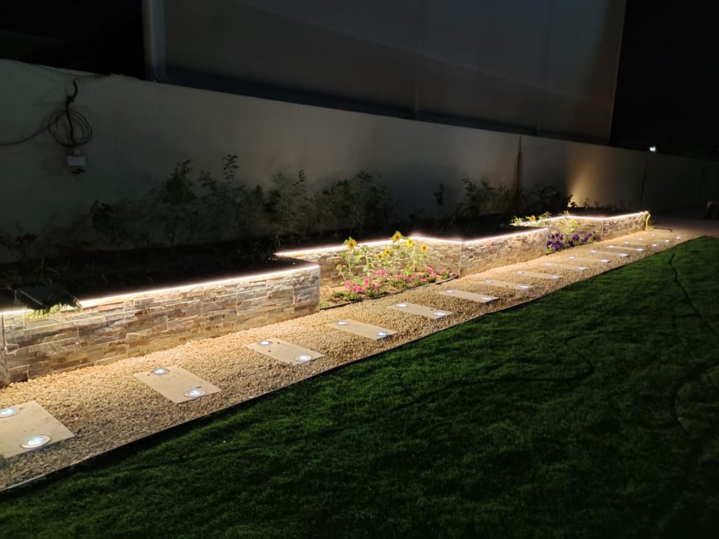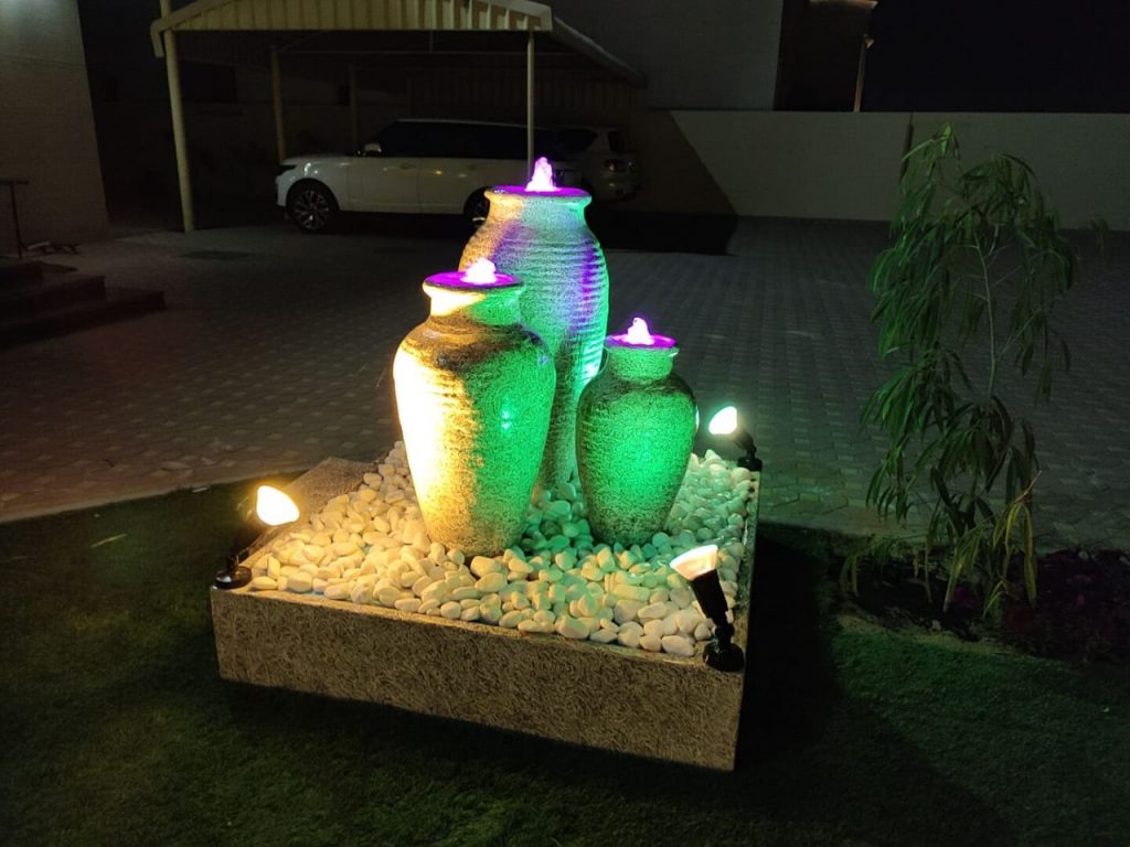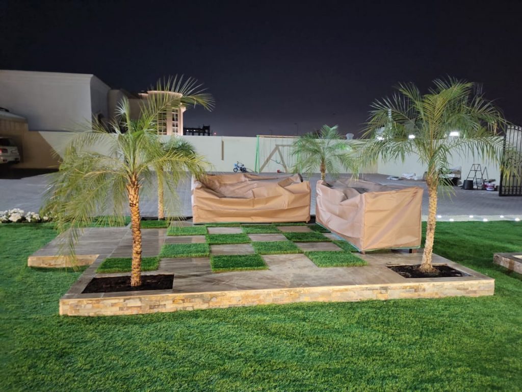 At Ajman our team has provided various services which include construction of Water Feature – Seating Area – Gazebo – installation of Garden Lights and Plantation.