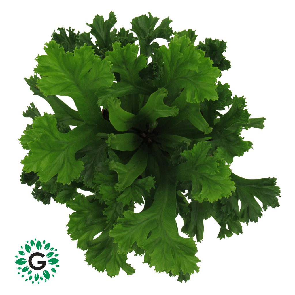 wavy edged fronds that grow in a rosette shape forming a bowl or nest.