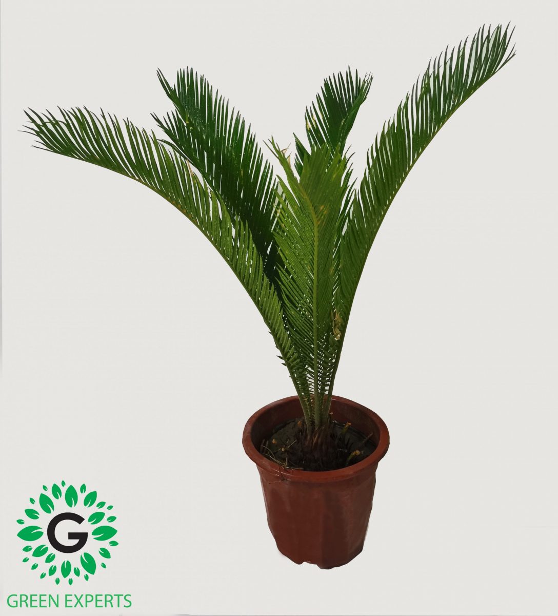 Cycas revoluta Cycad  is robust-stemmed cycad, erect at first but gradually relining with age, and suckering and branching when mature.